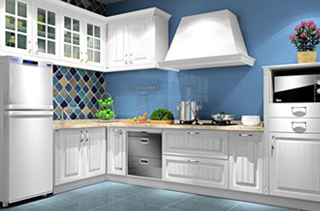 廚房使用PVC材質櫥柜,因為其表面光滑易清潔,沒有雜亂的色彩和繁復的線條,防水耐腐蝕、防潮 不開裂,使用壽命久